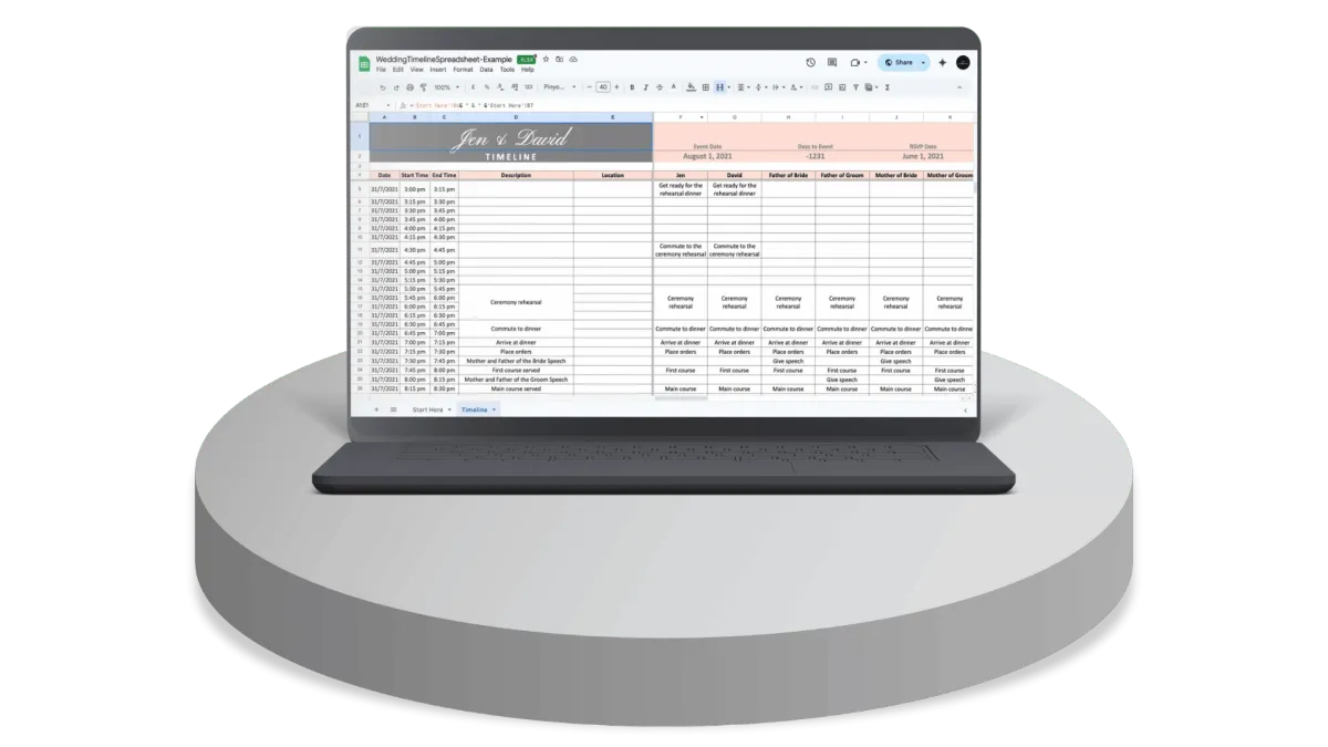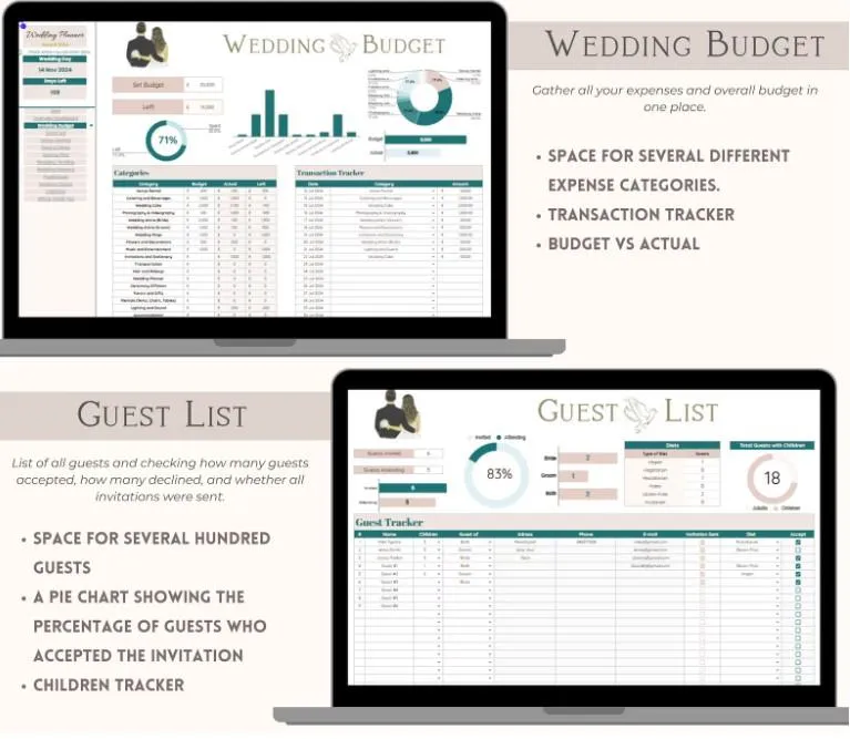 You will have full access to a MULTI - TAB spreadsheet that will allow you to easily set up and keep track of all the critical aspects of your wedding, so that nothing is missed